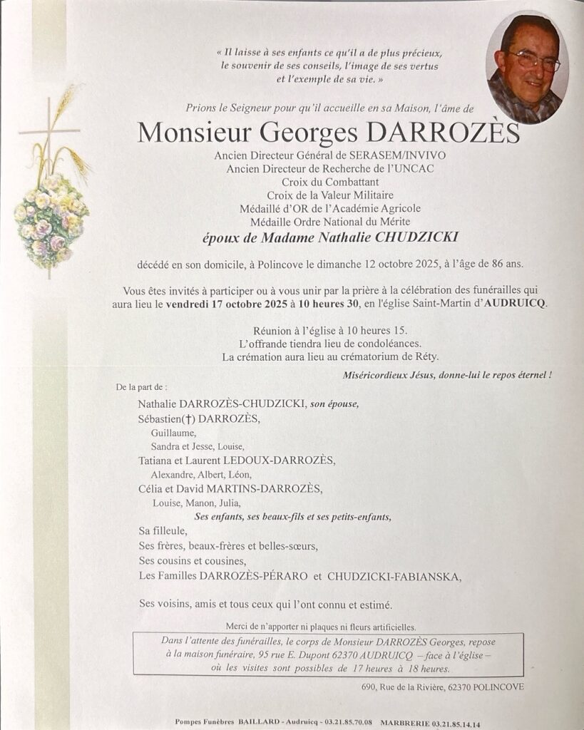 Prenez un instant pour laisser un message de réconfort ou un souvenir en hommage au défunt. Votre mot, empreint de bienveillance, sera transmis à la famille pour leur apporter un peu de chaleur et de soutien en cette période difficile. Chaque pensée compte.