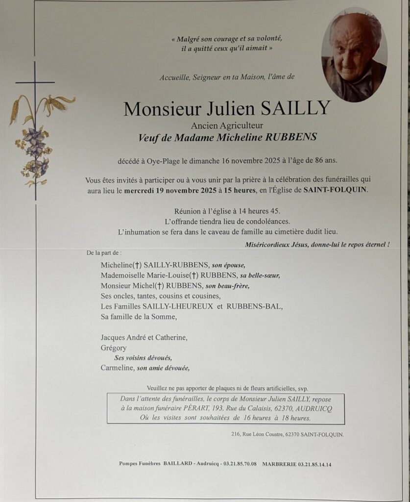 Monsieur SAILLY, repose au salon funéraire PÉRART,